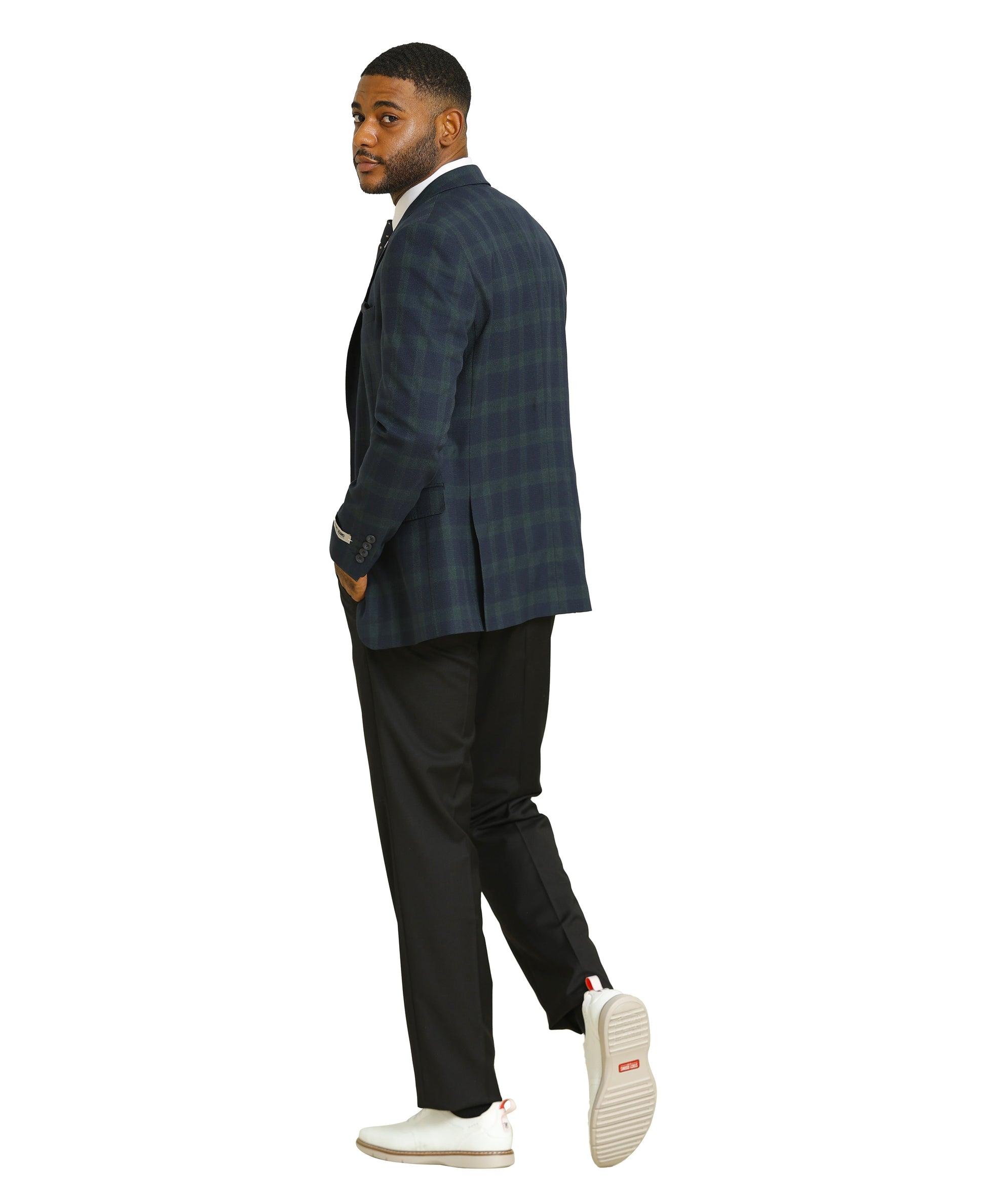Stacy Adams Plaid Jacket Only, Dark Blue w/ Green Plaid