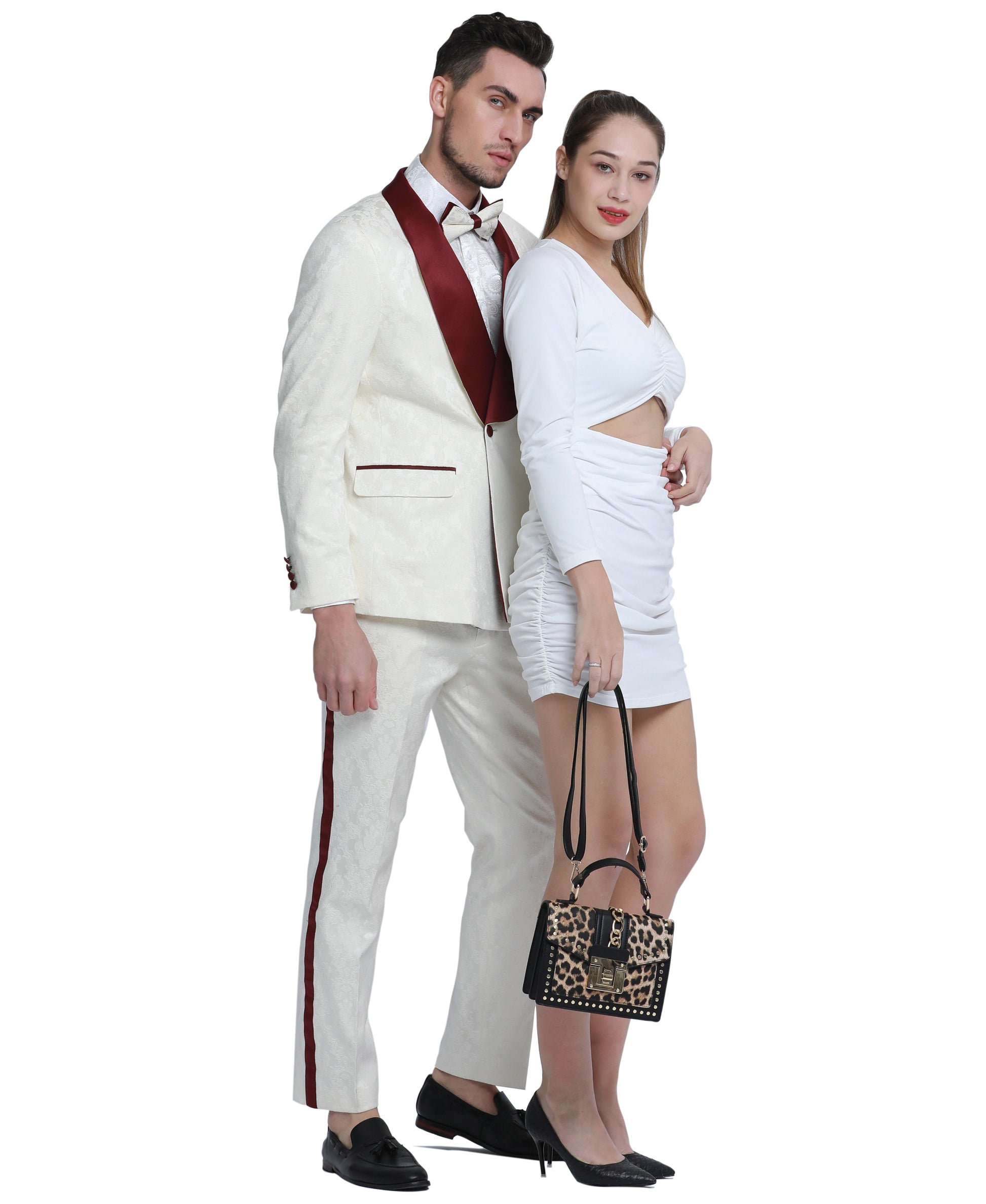 Tazzio Paisley Skinny Fit Shawl Collar Suit, White & Burgundy