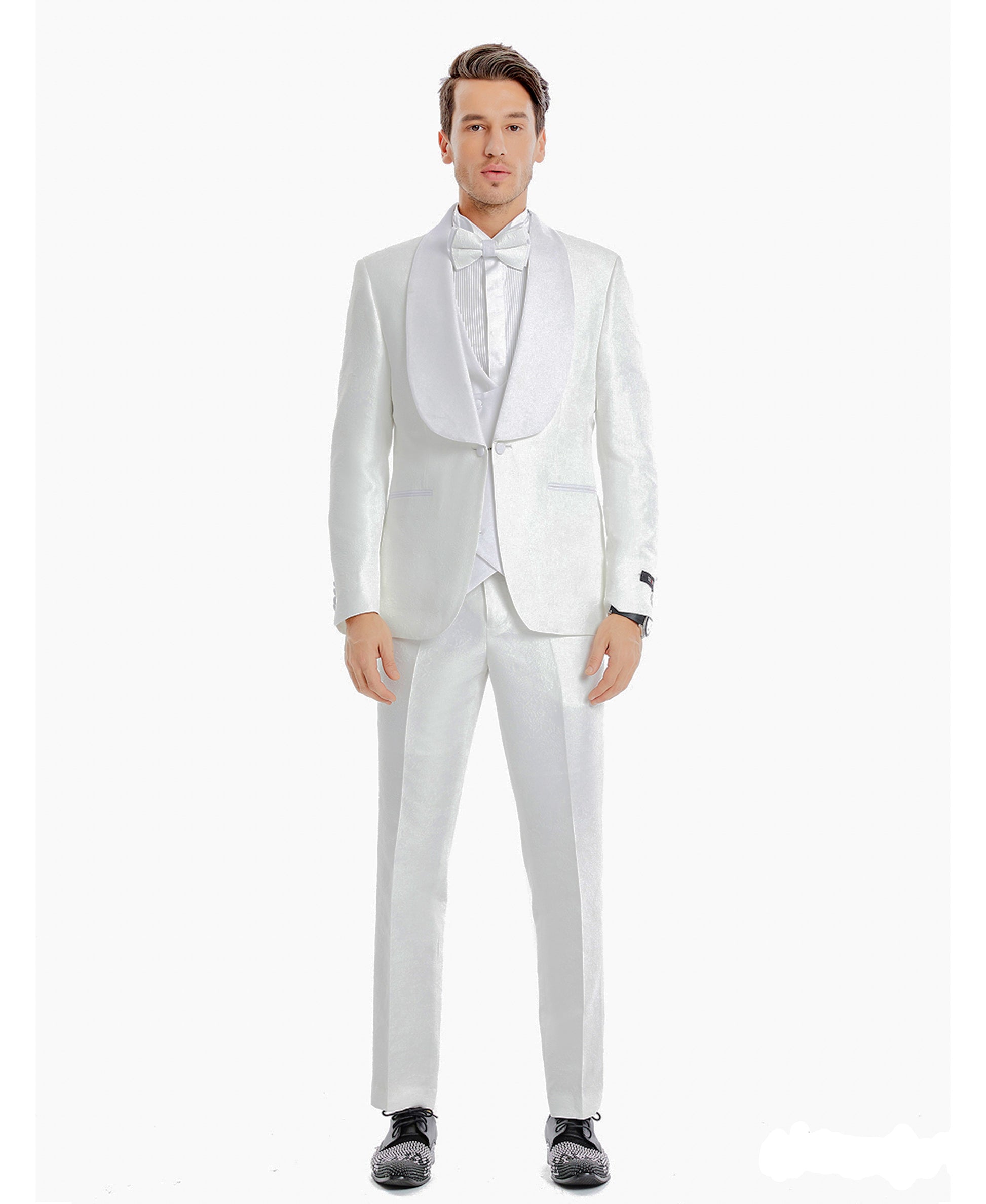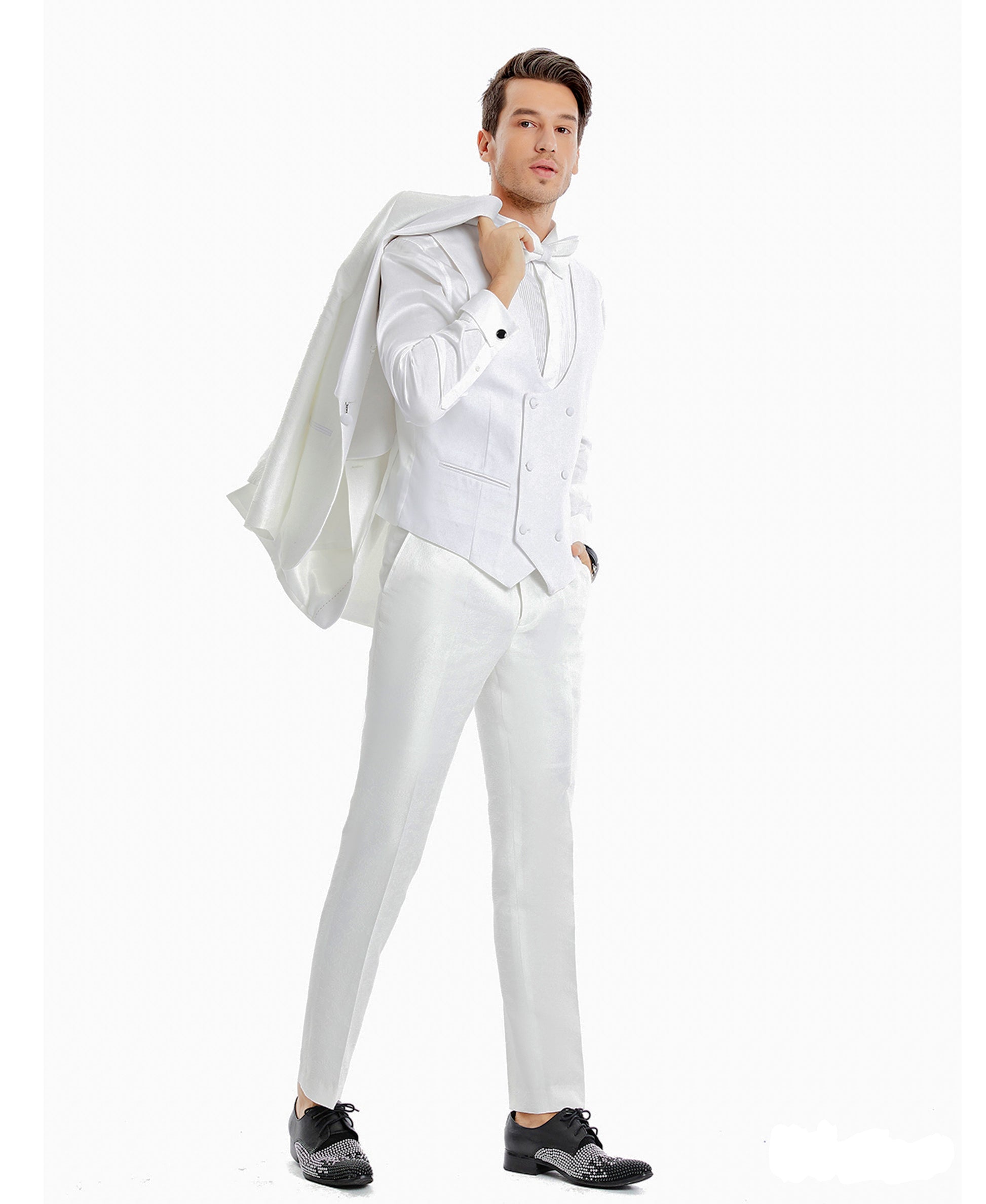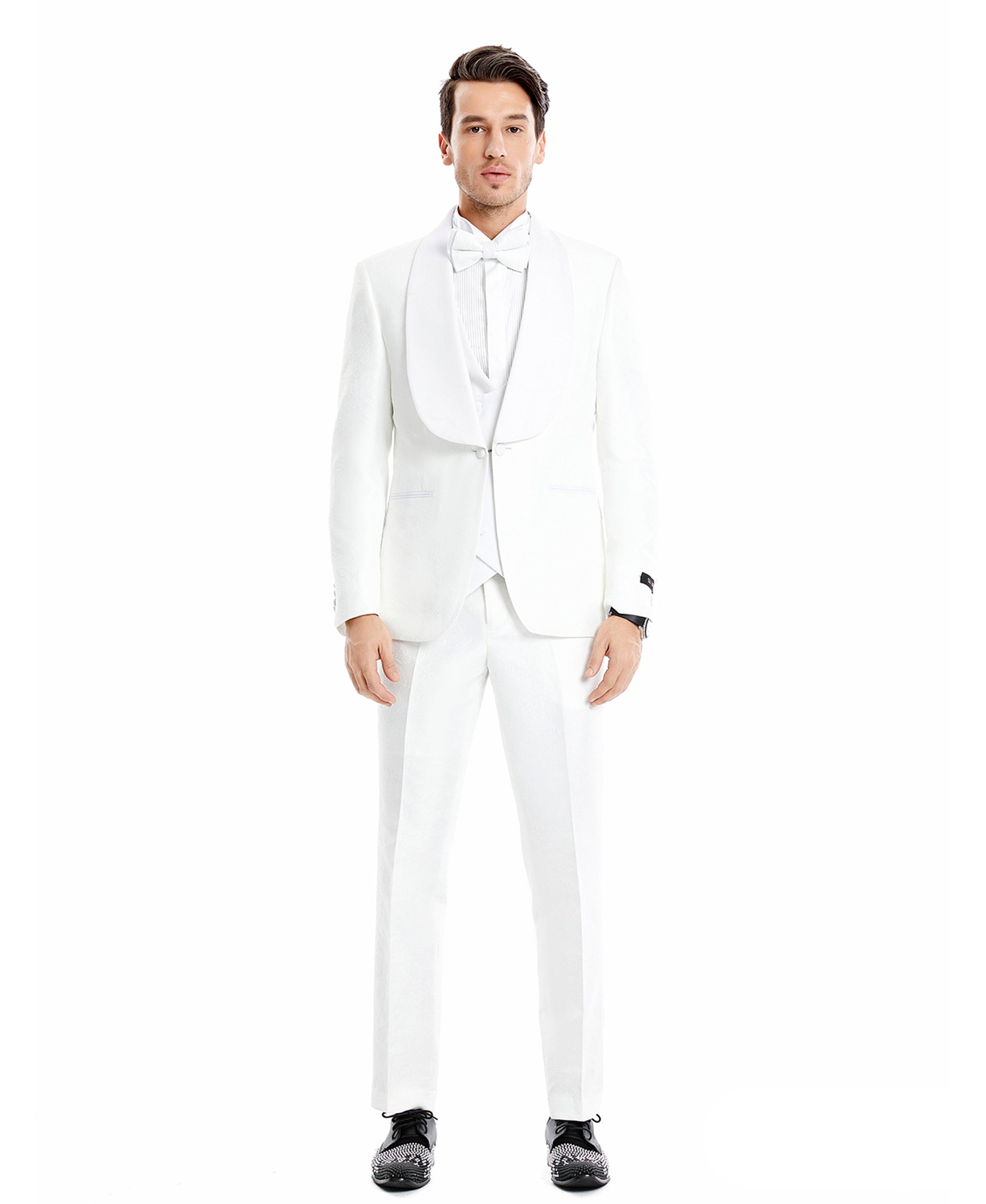Tazzio Skinny Fit U-Shawl Collar Suit Set, White