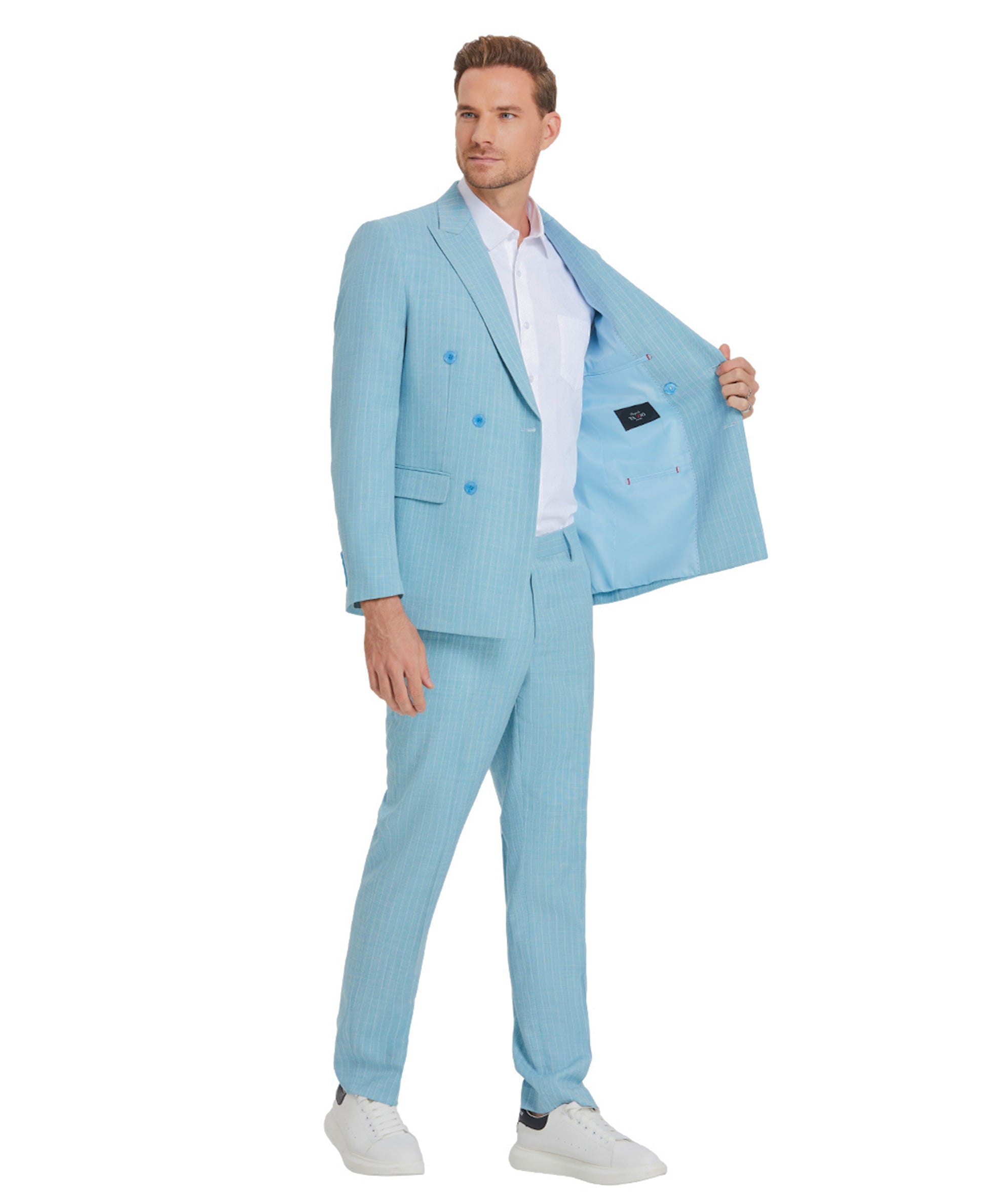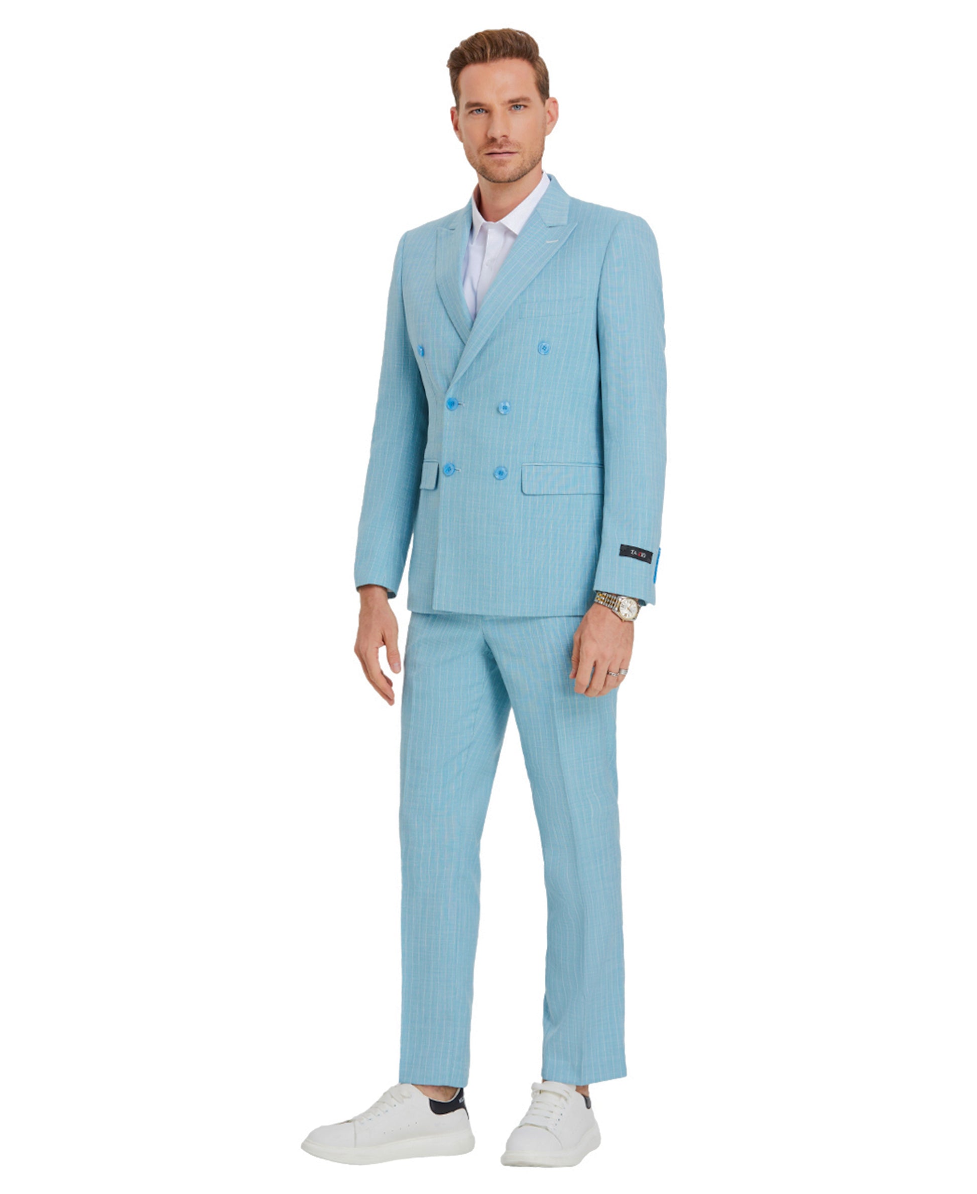Tazzio Skinny Fit Pinstripe Double-breasted Suit, Celeste