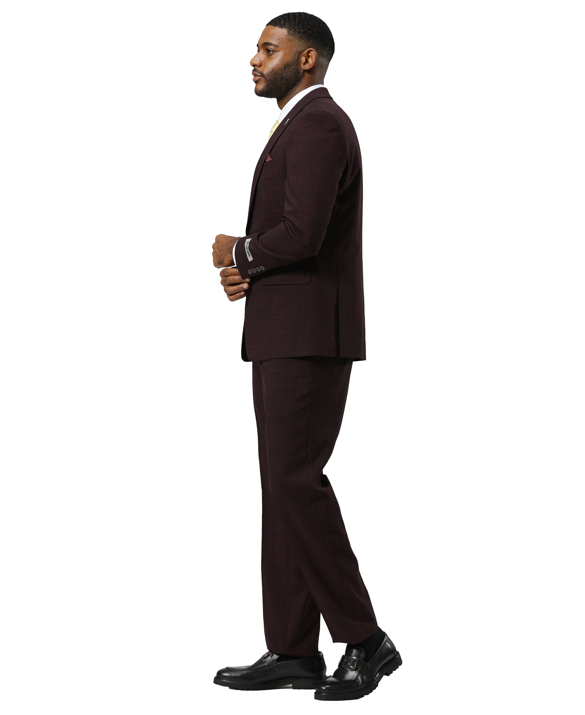 Stacy Adams Men's Suit Tattersall Pattern, Burgundy
