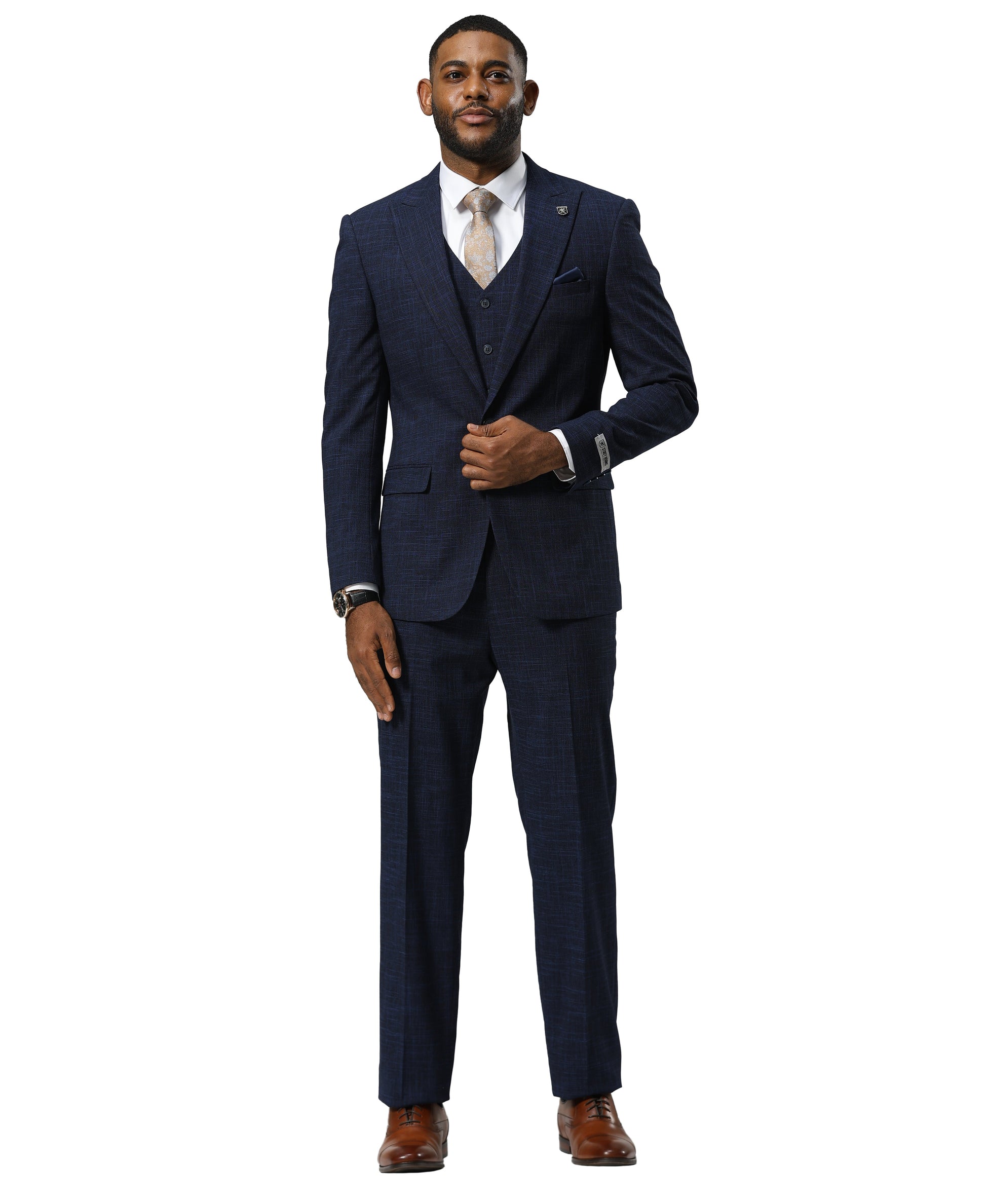 Stacy Adams Men's Suit Tattersall Pattern, Dark Navy