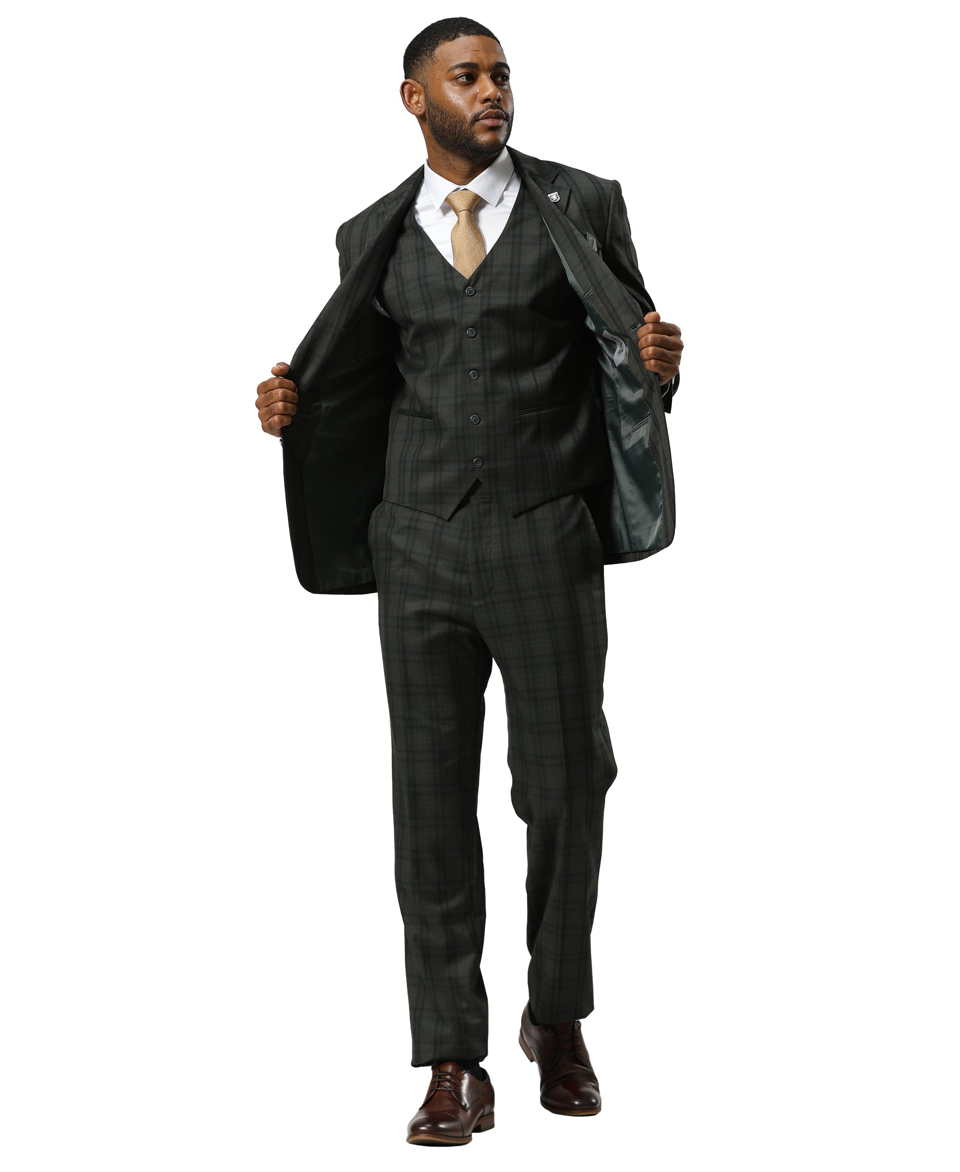 Stacy Adams Men's Glen Plaid 3pc Suit Set, Dark Green