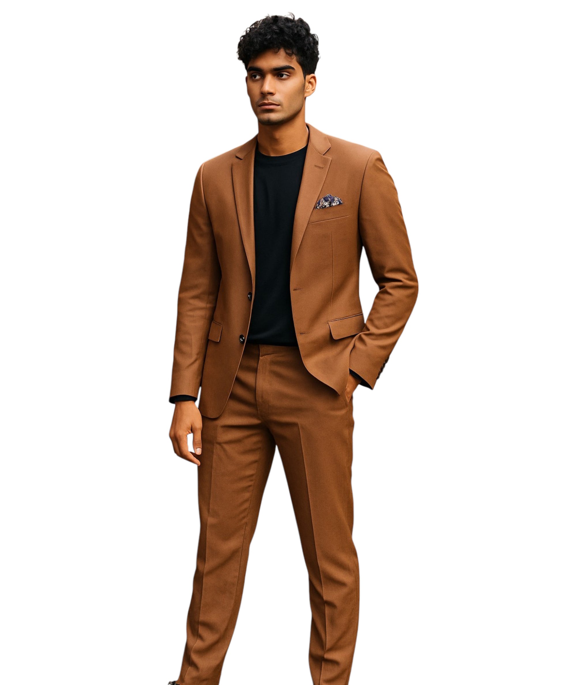 Tazzio Slim-Fit Notch Lapel Solid 2pc Suit Set, Caramel