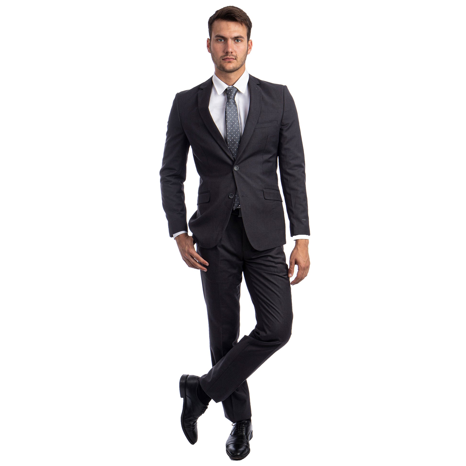 Crafted with precision, the Azzuro Men's Slim-Fit Polyester Suit 2-Piece in charcoal gray seamlessly blends traditional elegance with contemporary sophistication. The single-breasted jacket showcases a timeless notch lapel, two-button closure, and functional side flap pockets, while the slim-fit pants offer a sleek flat front design. Constructed from premium 100% polyester fabric, this ensemble delivers impeccable style and lasting comfort. Whether for business meetings or formal events, the Azzuro suit epitomizes effortless refinement, ensuring you make a memorable impression at every occasion.