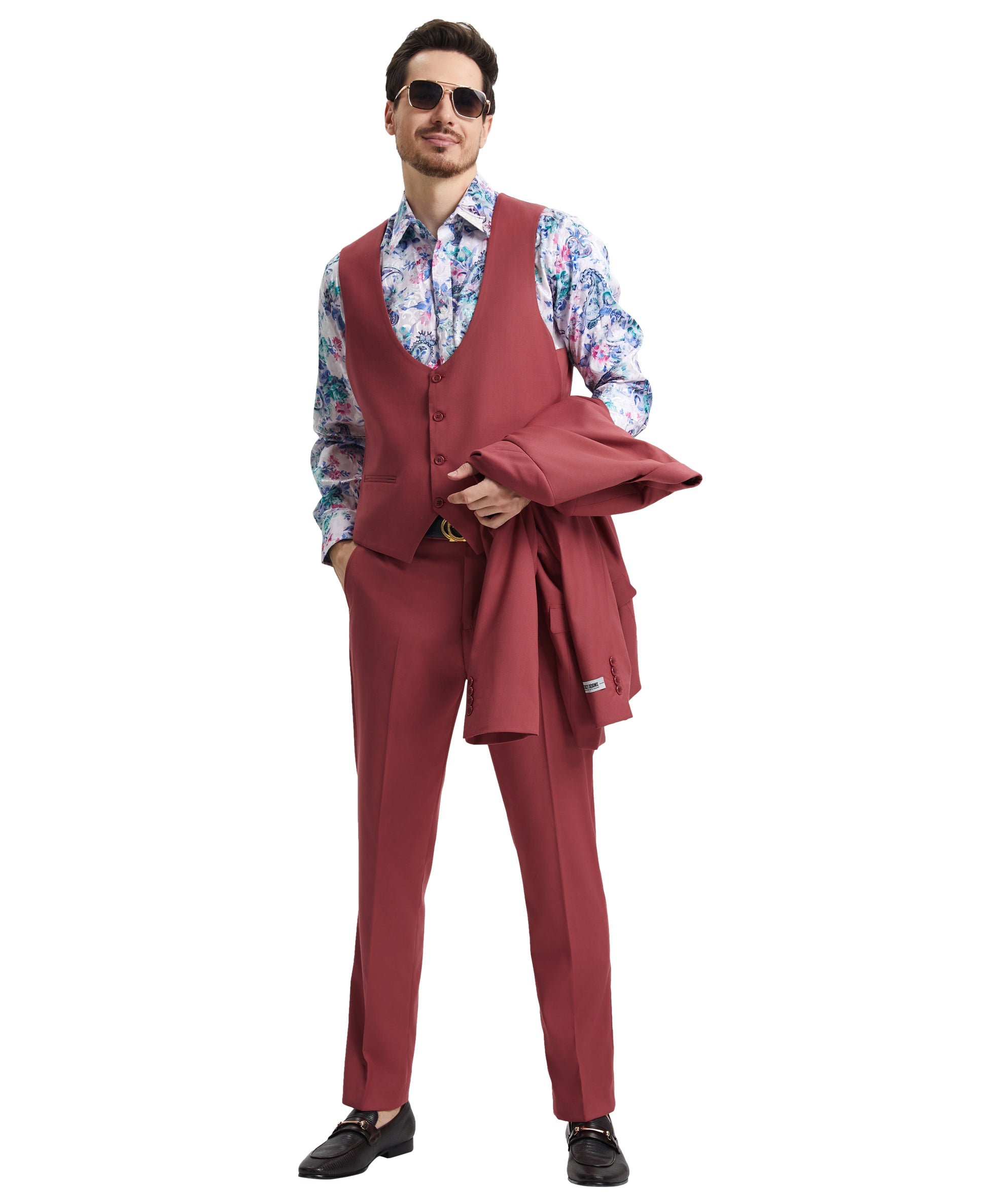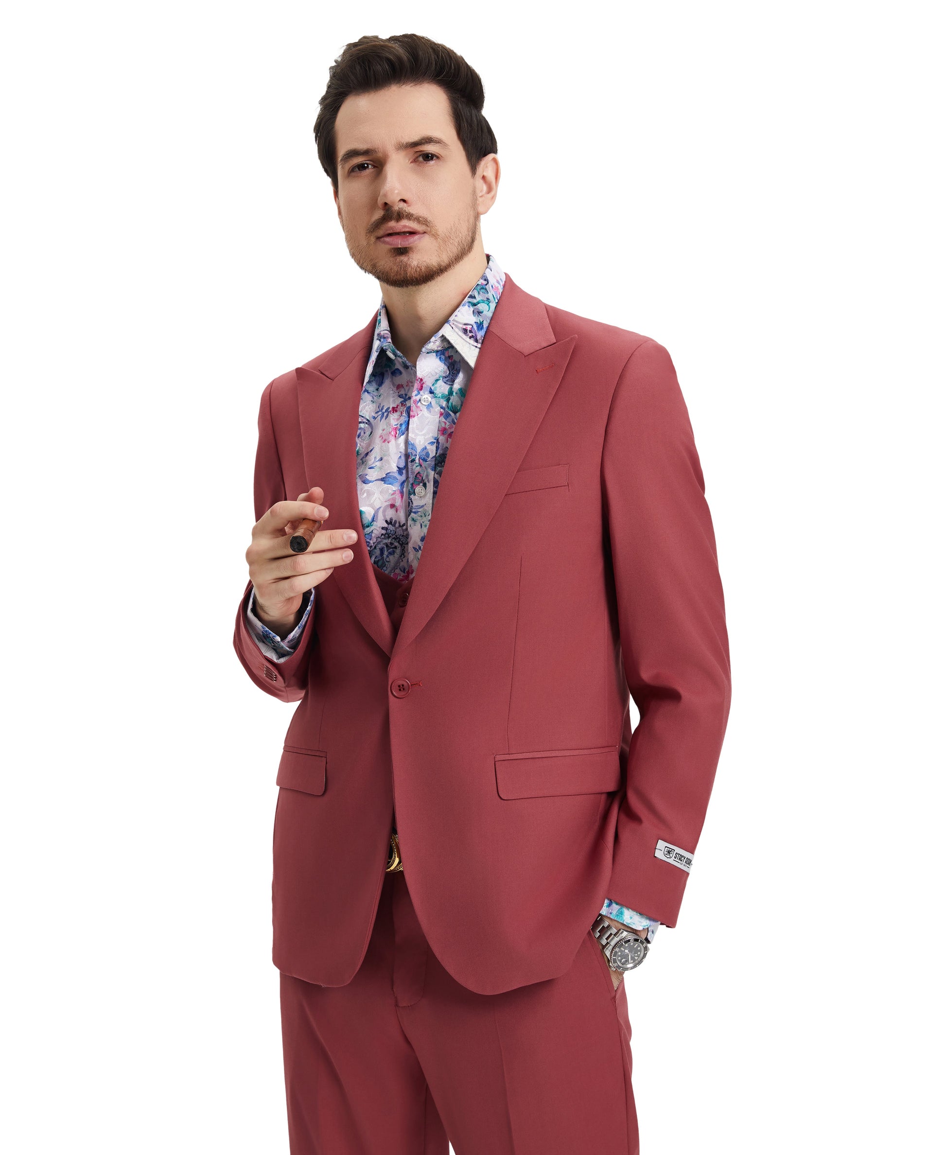 Stacy Adams Men's Hybrid-Fit 3pc Coral Suit Set, Jacket Vest and Pants