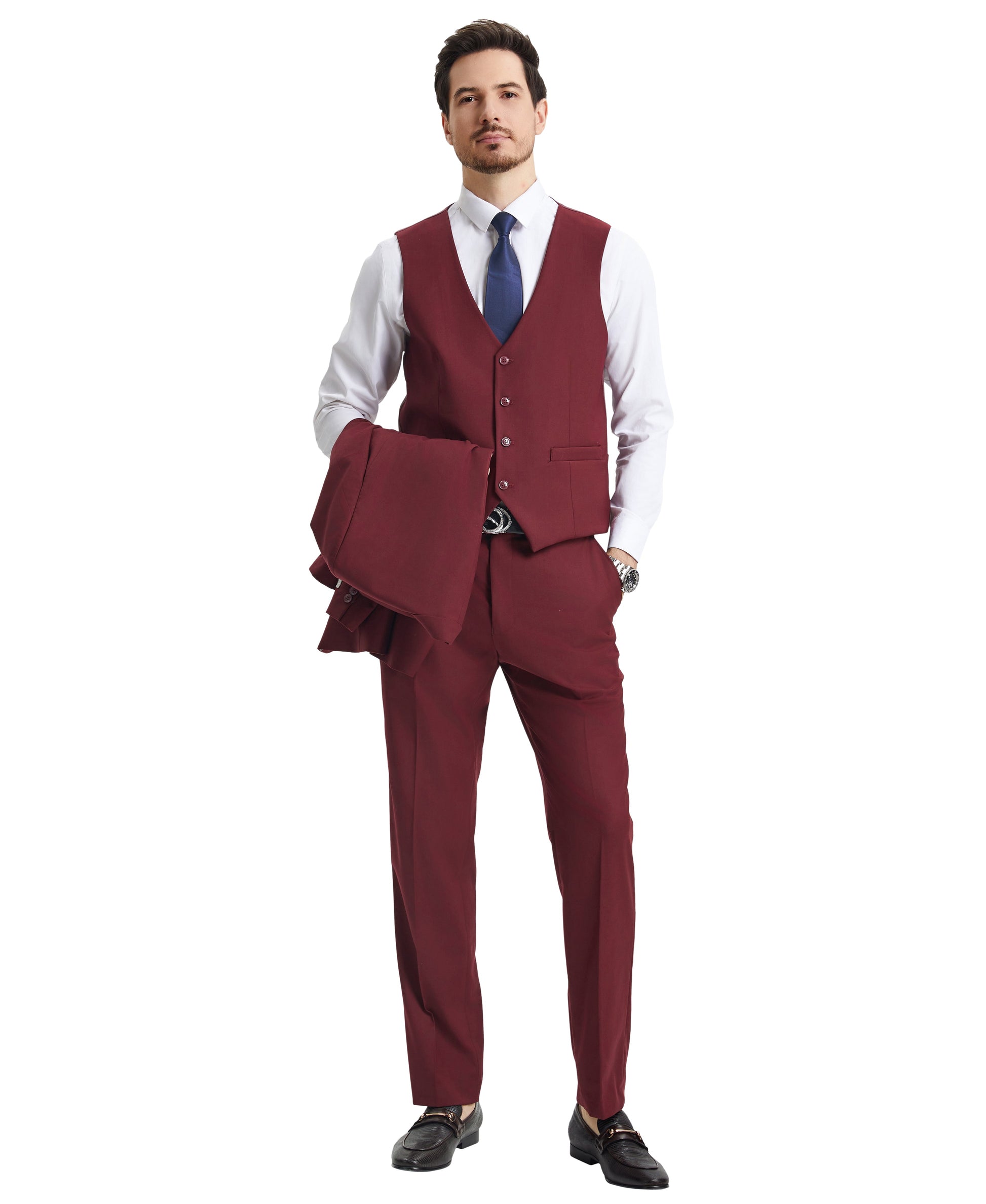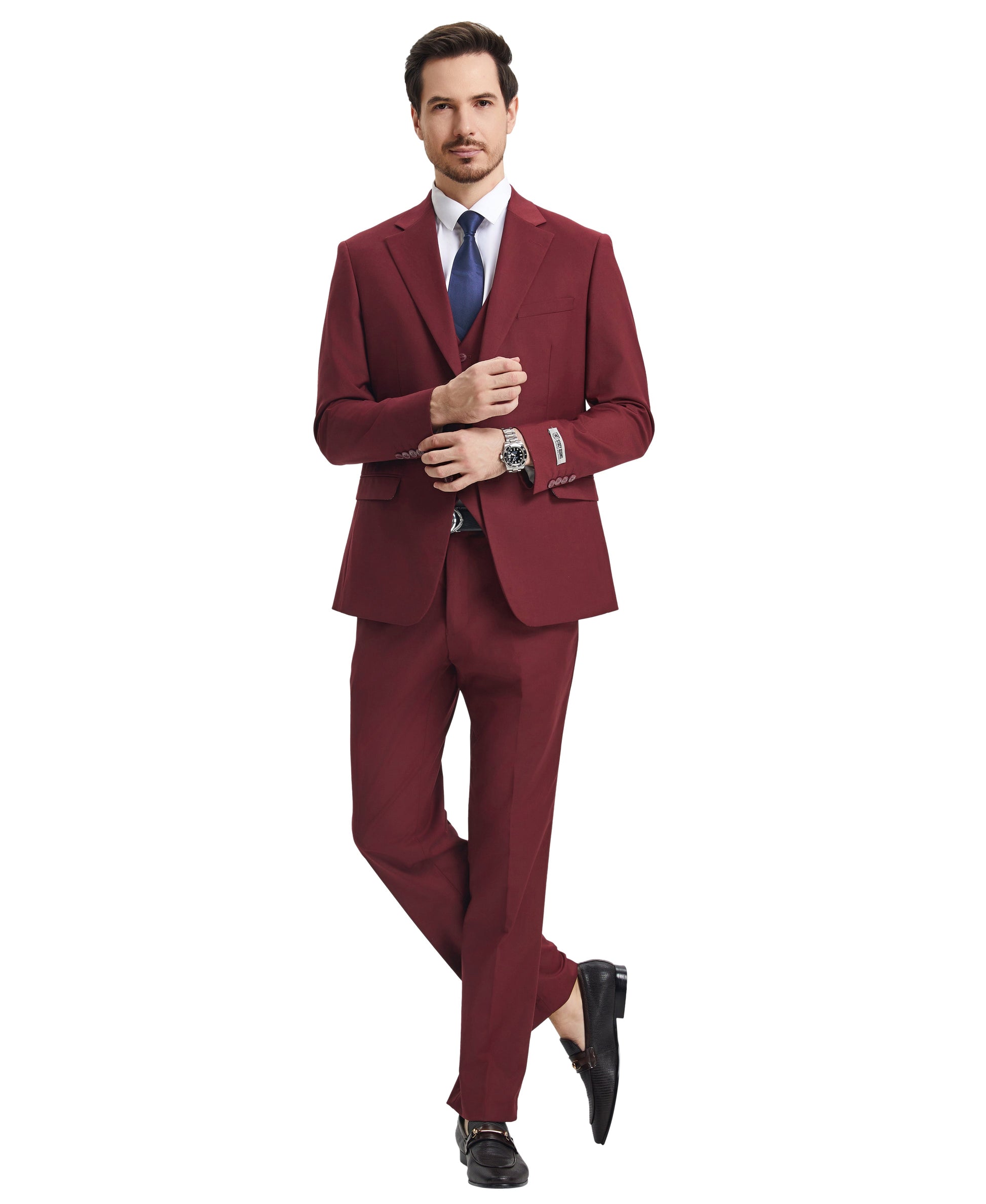 Enhance your wardrobe with the contemporary appearance of the Stacy Adams Hybrid-Fit Vested Suit in Solid Burgundy Wine. This 3-piece suit sports a one-button closure and notch lapel for a dashing look. The Hybrid Fit presents a tailored silhouette and superior comfort. The flat front trousers generate a sleek and elegant profile. An eye-catching 5-button double-breasted vest finishes the ensemble. Invest in the Stacy Adams Hybrid-Fit Vested Suit to make a standout impression and upgrade your style.