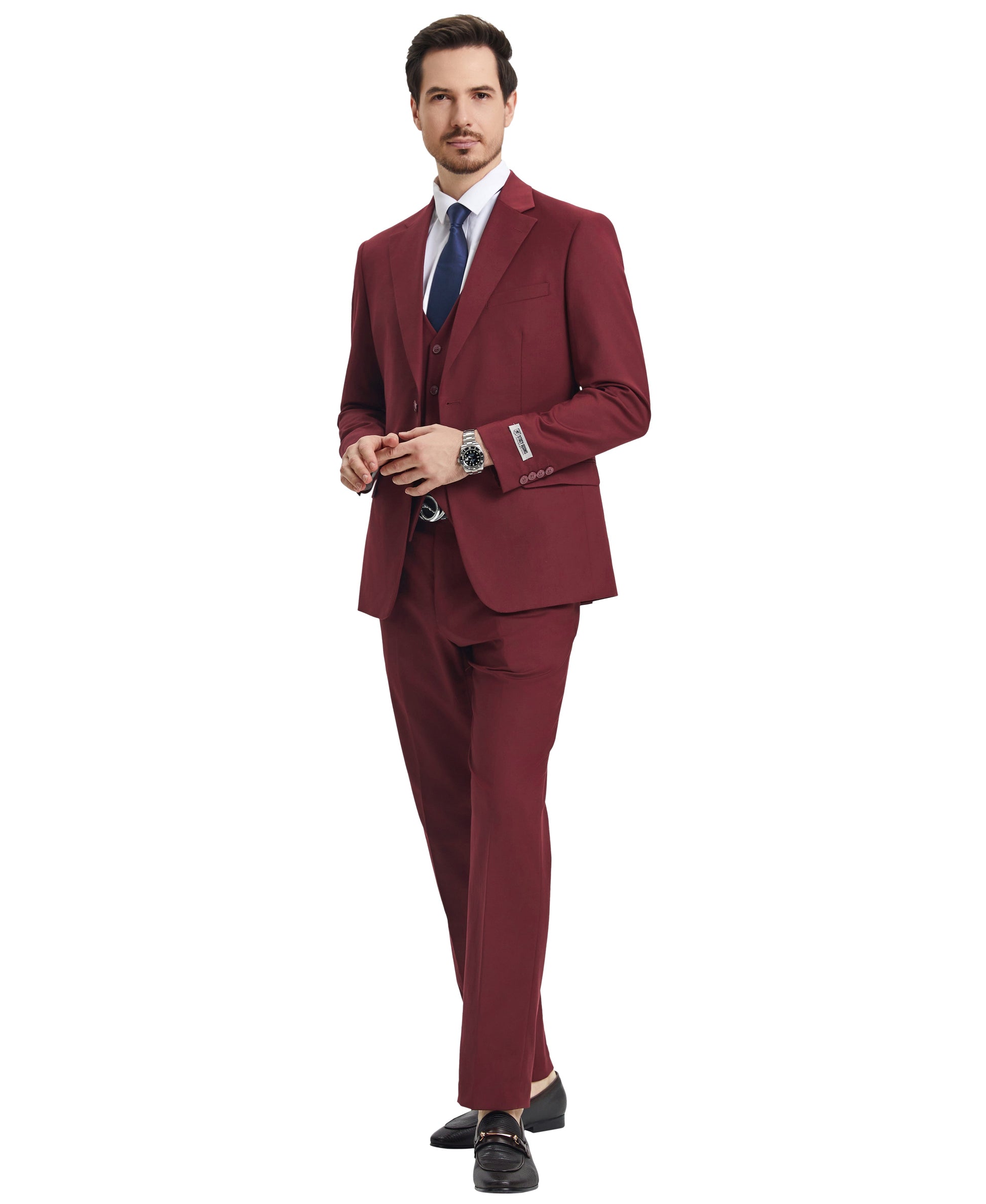 Stacy Adams Hybrid-Fit Vested Suit, Burgundy Wine