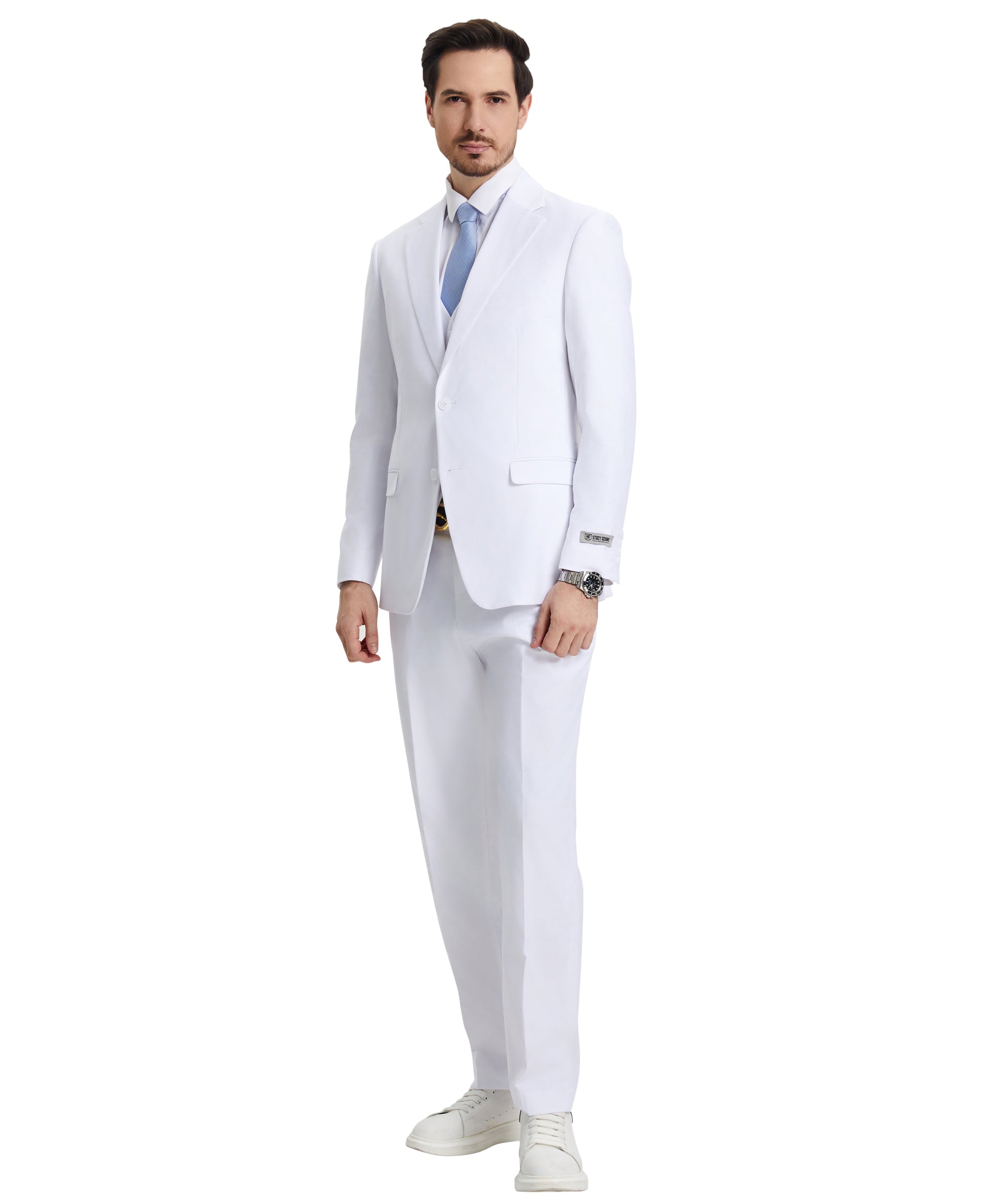 Enhance your wardrobe with the contemporary appearance of the Stacy Adams Hybrid-Fit Vested Suit in Solid Snow White. This 3-piece suit sports a one-button closure and notch lapel for a dashing look. The Hybrid Fit presents a tailored silhouette and superior comfort. The flat front trousers generate a sleek and elegant profile. An eye-catching 5-button double-breasted vest finishes the ensemble. Invest in the Stacy Adams Hybrid-Fit Vested Suit to make a standout impression and upgrade your style.
