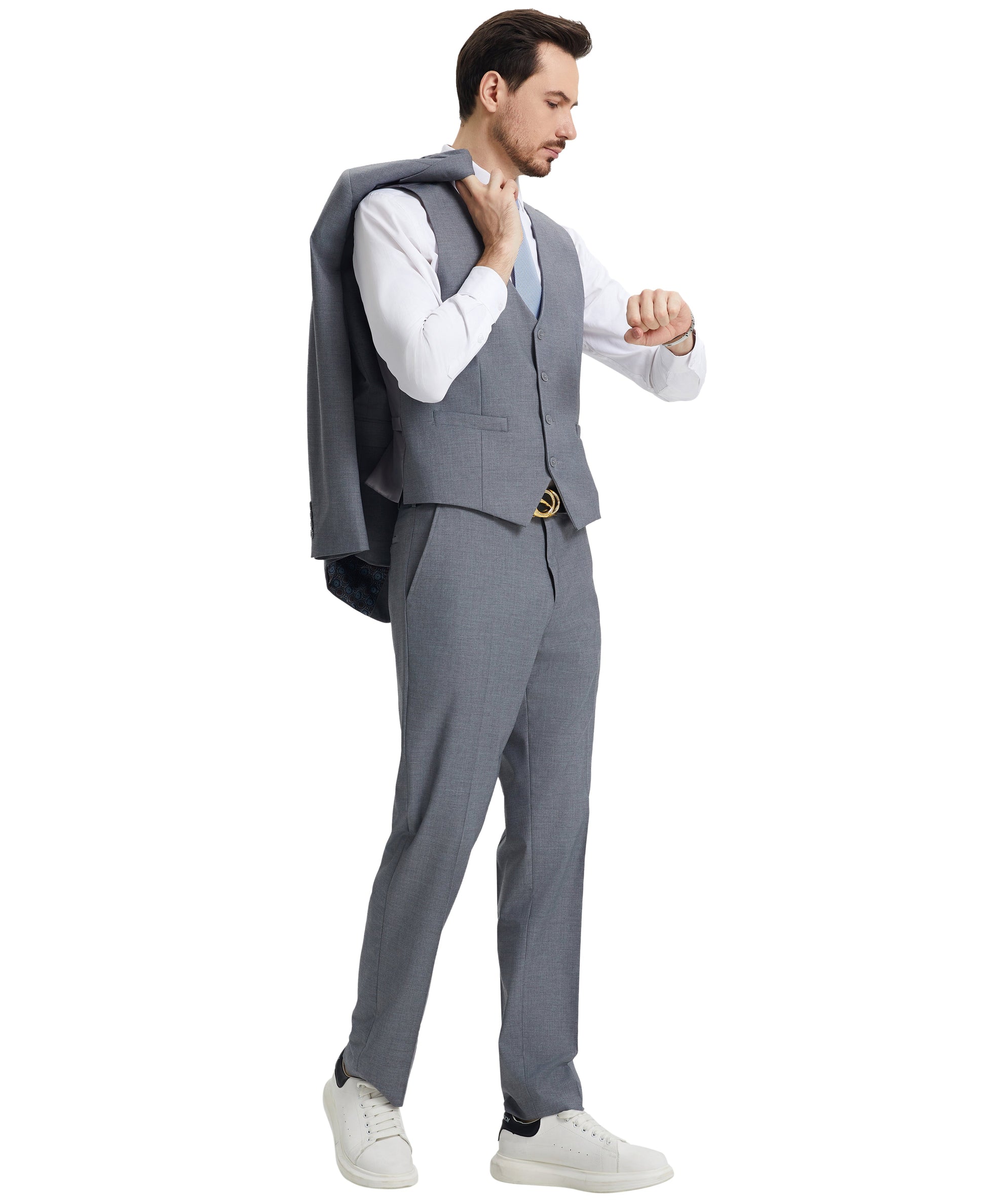 Make a bold statement with the Stacy Adams Hybrid-Fit Vested Suit in Solid Formal Grey. This stylish 3-piece set is designed to offer a modern, sharp look with its one-button closure and notch lapel. The Hybrid Fit ensures a flattering, comfortable fit, while the flat-front trousers enhance your silhouette with a sleek finish. The standout 5-button double-breasted vest adds a touch of sophistication, elevating the overall ensemble. Perfect for any occasion, this suit combines timeless elegance with contemporary flair for a look that’s sure to turn heads.