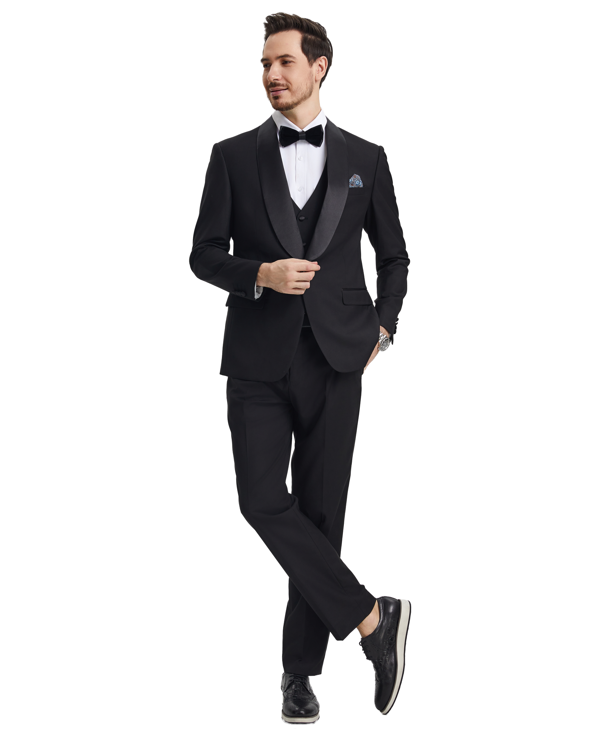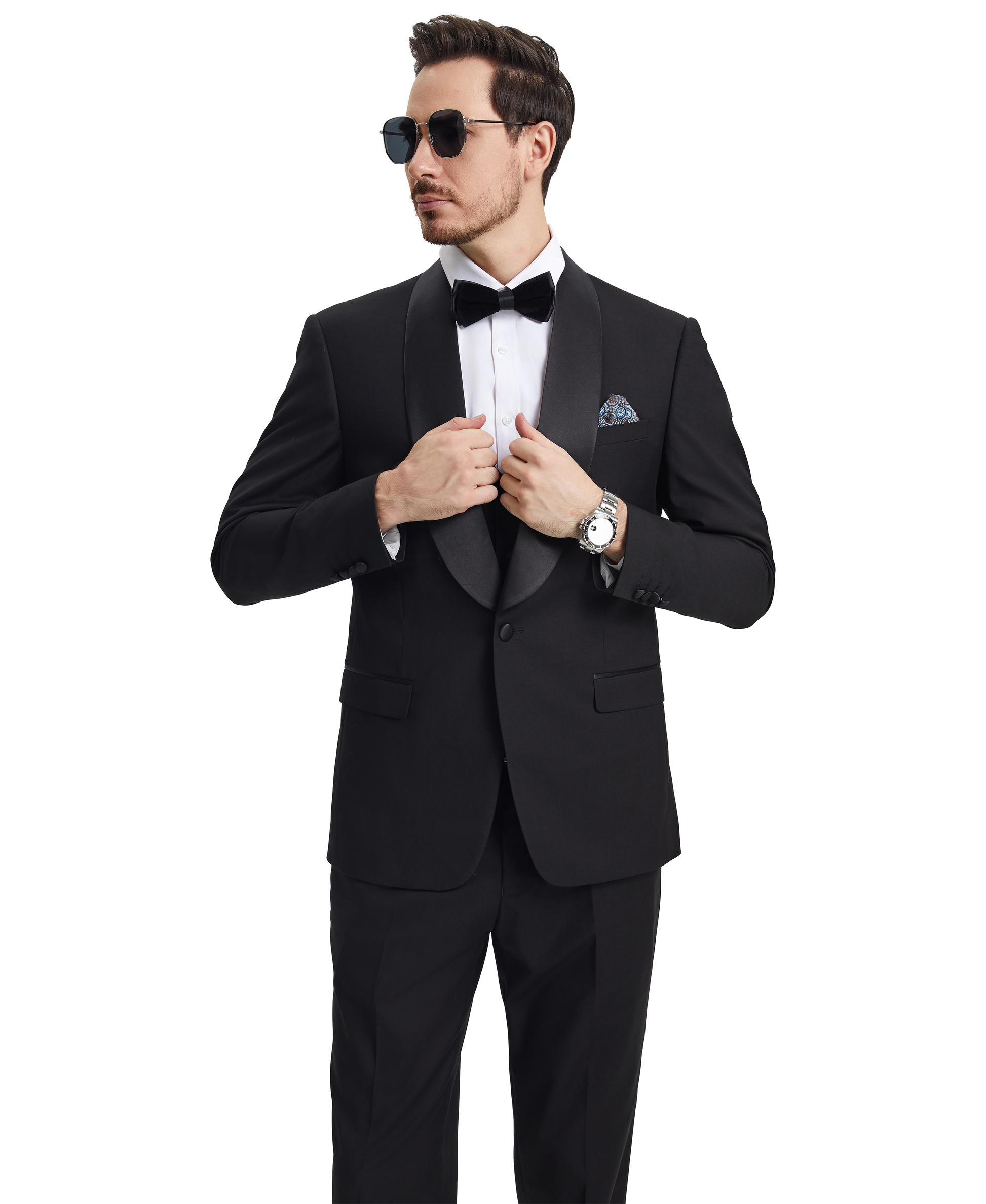 Stacy Adams Men's Hybrid-Fit 3pc Tuxedo Set, Black