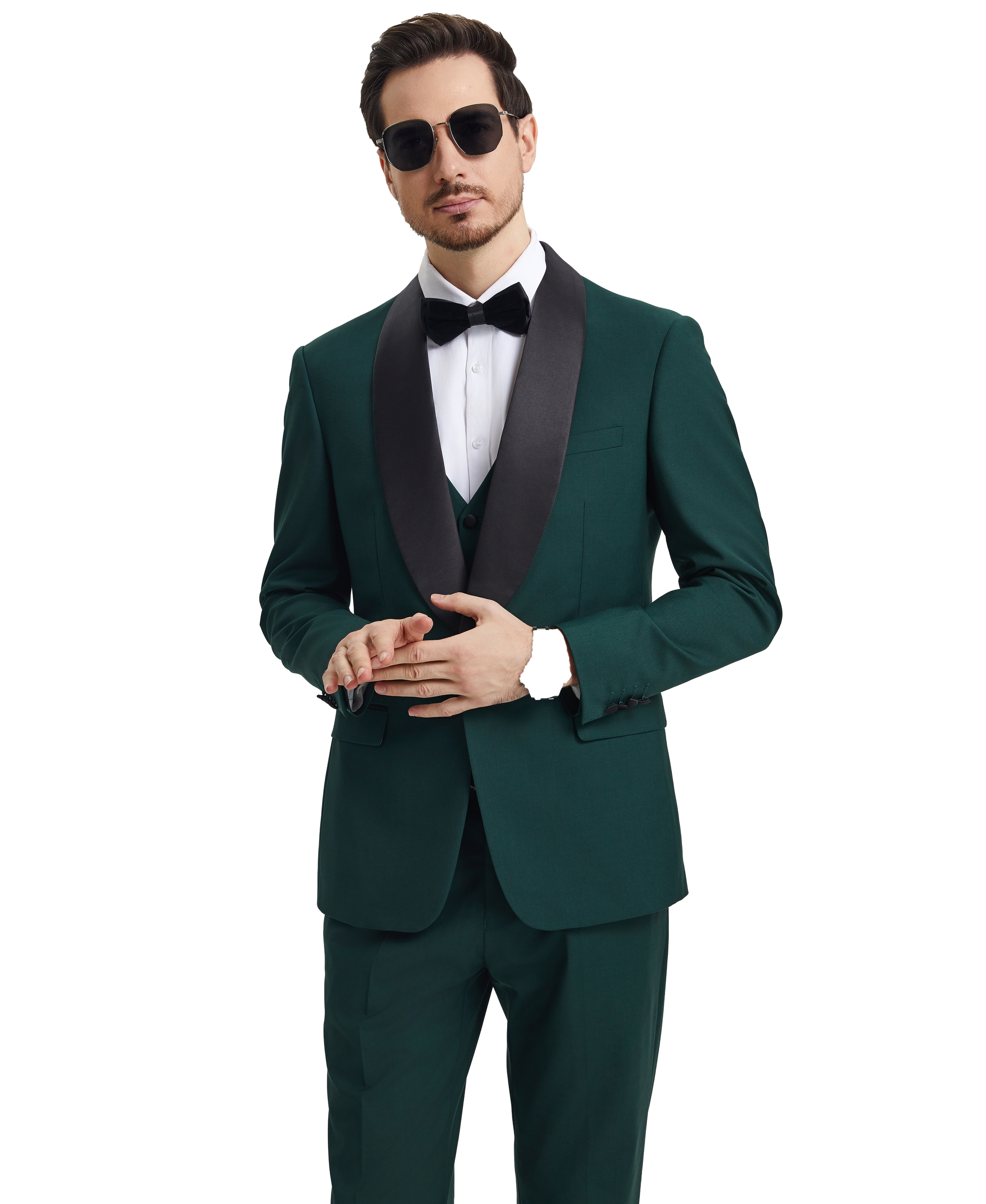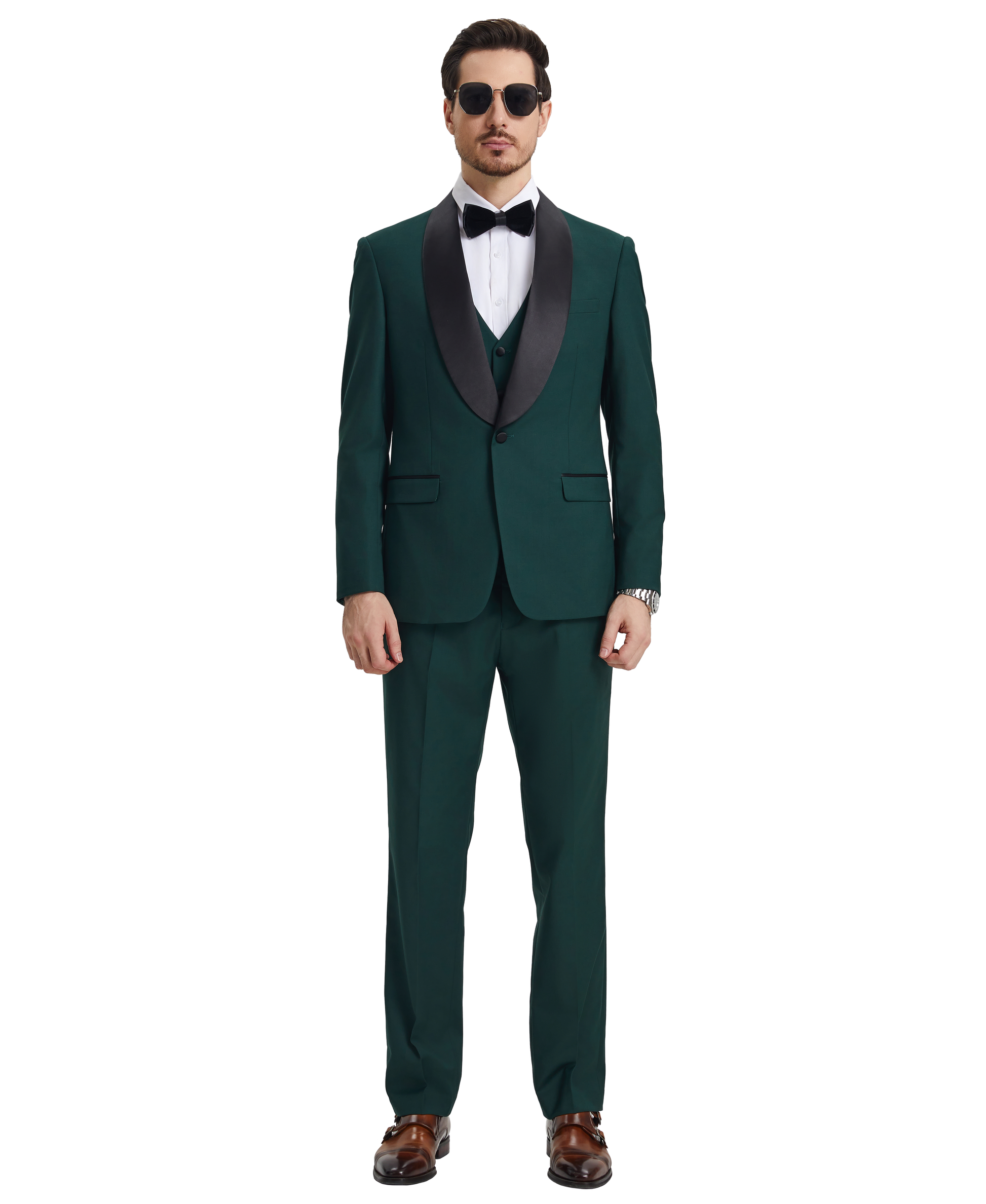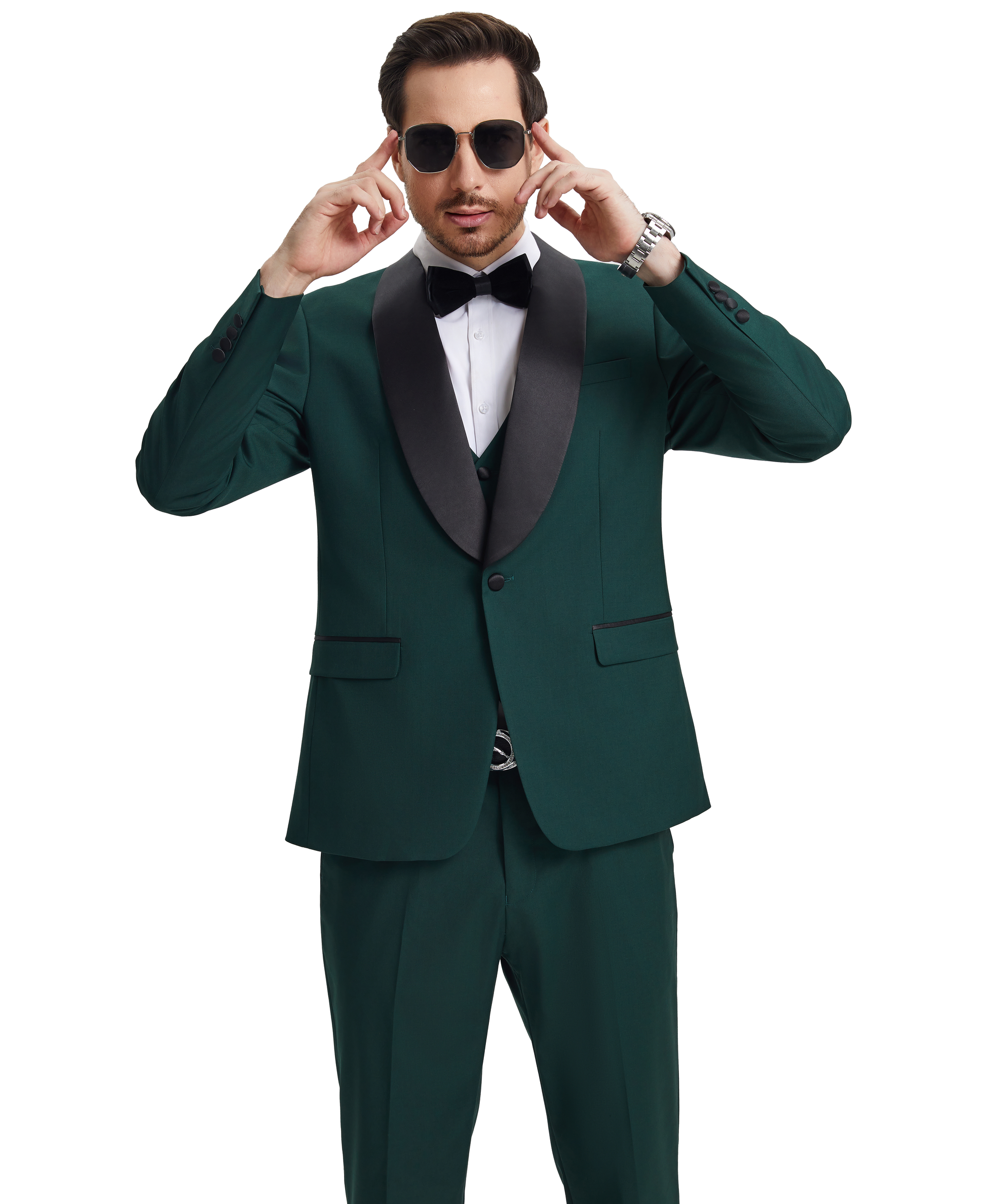 Experience the glamour and elegance of the Stacy Adams Hybrid-Fit Vested Tuxedo, Green. Carefully crafted for a sophisticated appeal, this 3-piece suit will make a lasting impression at any special event. It features a single-button fastening, a luxuriant satin-black shawl collar, and vivid Green hue for a timeless aura. Enhanced by hybrid fit combining modern tailoring and comfort, a flat front pant for a sleek look, plus a versatile five-button vest, the look is complemented by size options and unhemmed pants for personalization. Make a grand entrance with the Stacy Adams Green Tuxedo & embrace the prestigious quality and style of Stacy Adams. Shop now to shine!