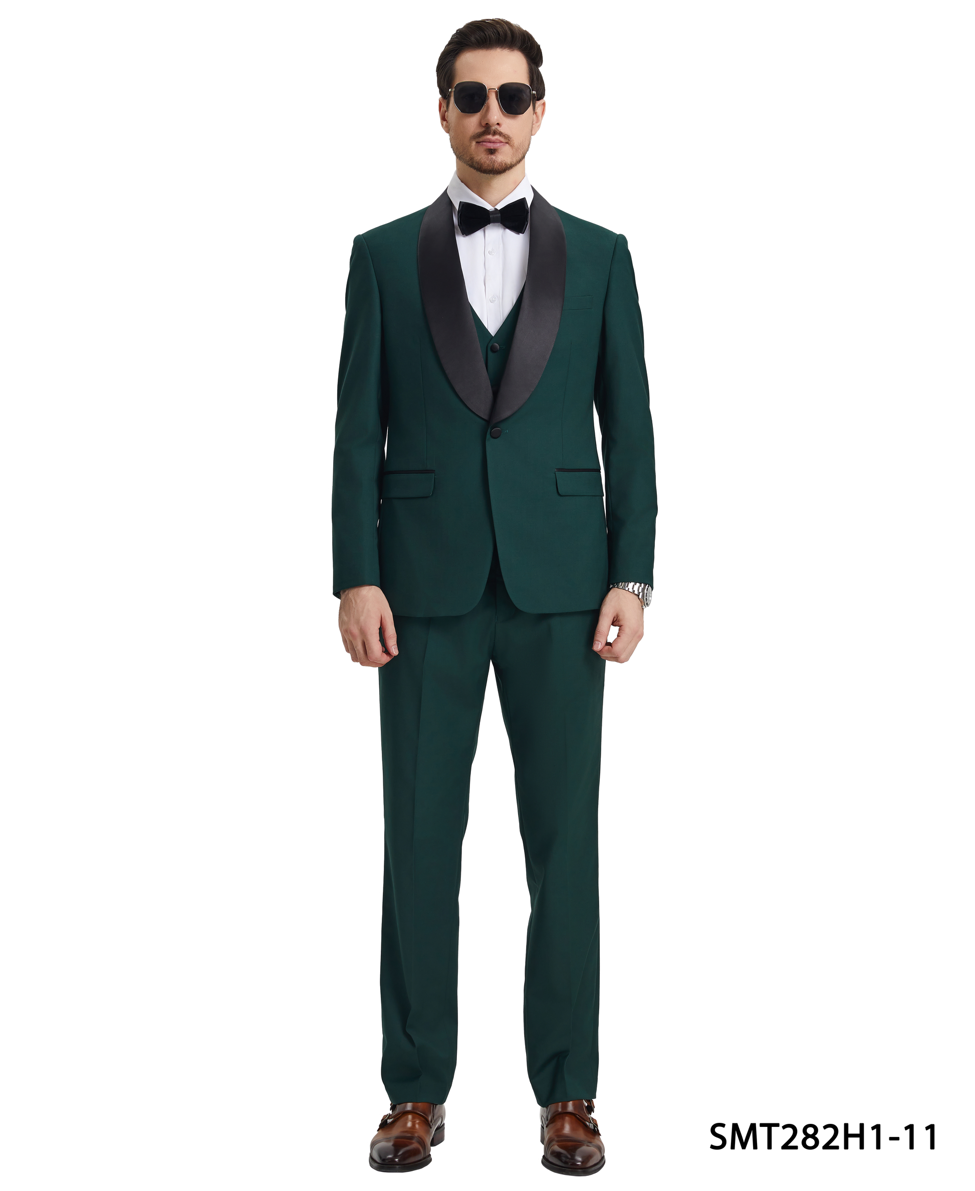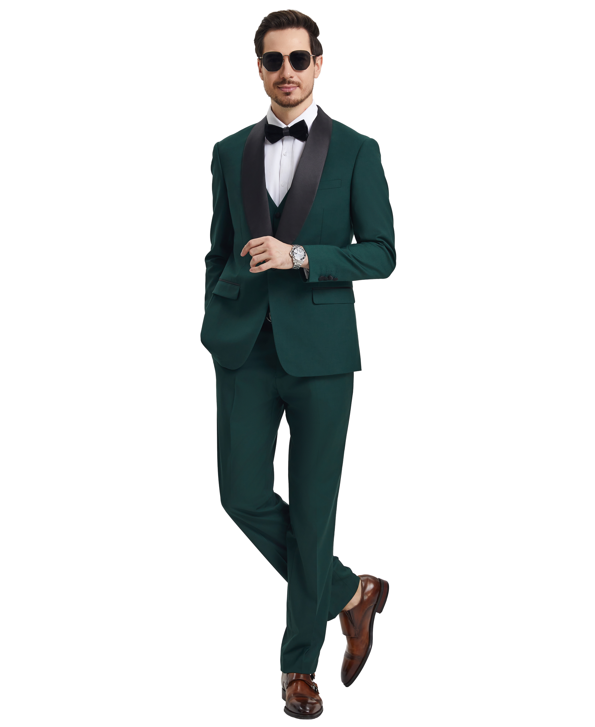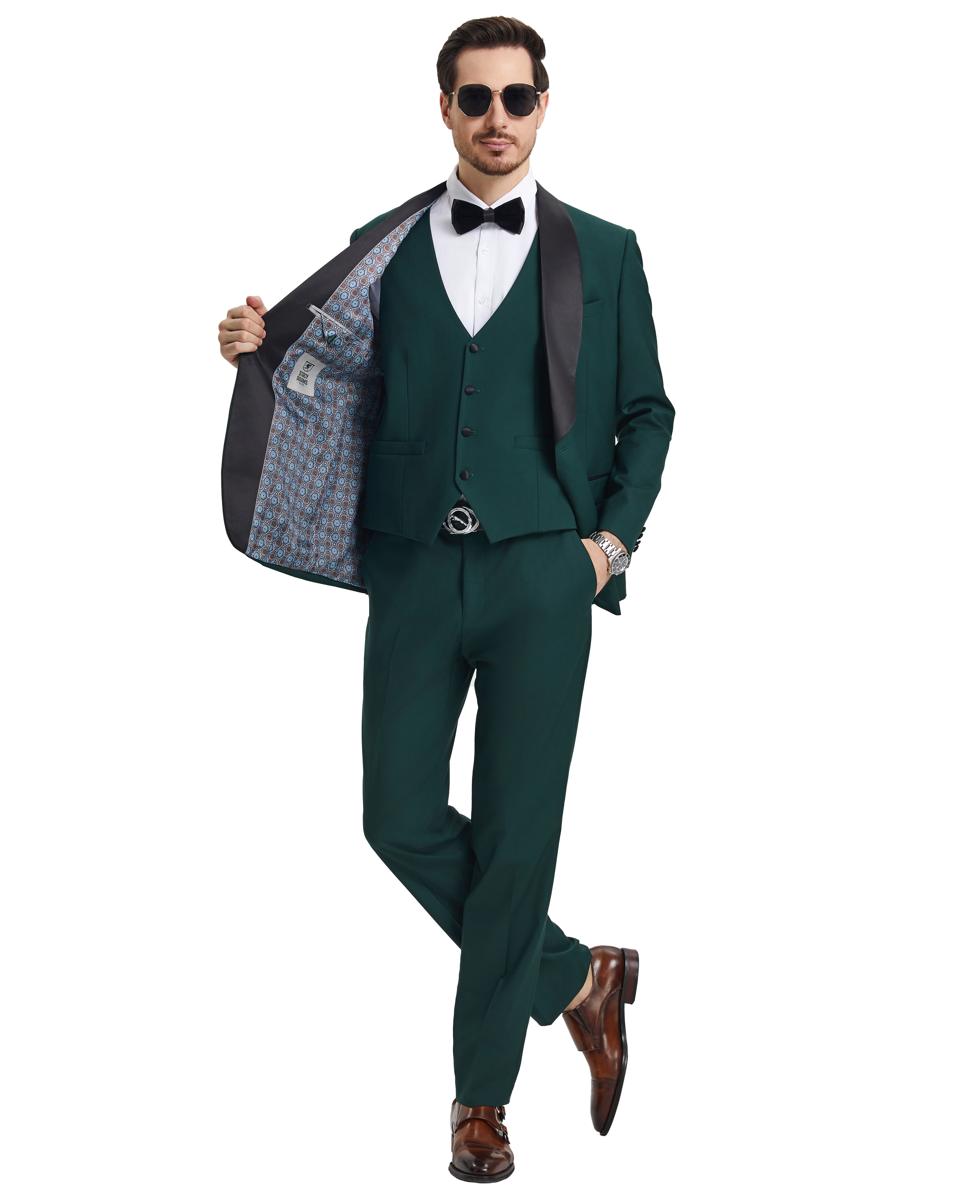 Experience the glamour and elegance of the Stacy Adams Hybrid-Fit Vested Tuxedo, Green. Carefully crafted for a sophisticated appeal, this 3-piece suit will make a lasting impression at any special event. It features a single-button fastening, a luxuriant satin-black shawl collar, and vivid Green hue for a timeless aura. Enhanced by hybrid fit combining modern tailoring and comfort, a flat front pant for a sleek look, plus a versatile five-button vest, the look is complemented by size options and unhemmed pants for personalization. Make a grand entrance with the Stacy Adams Green Tuxedo & embrace the prestigious quality and style of Stacy Adams. Shop now to shine!